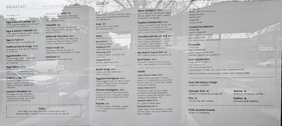 Welcome to Lorenzo's Espresso, a charming café located at 79 Fletcher St, Essendon, VIC. This delightful spot serves a diverse menu, perfect for breakfast and lunch enthusiasts. Start your day with mouth-watering options like the Traditional Bacon & Eggs or indulge in the rich Eggs Benedict. If you crave something sweet, the Buttermilk Pancakes and French Toast are must-tries. For lunch, savory pasta dishes like Pollo Fungi and Bolognese beckon, alongside hearty rolls like the Steak Sandwich or Chicken Parmigiana.